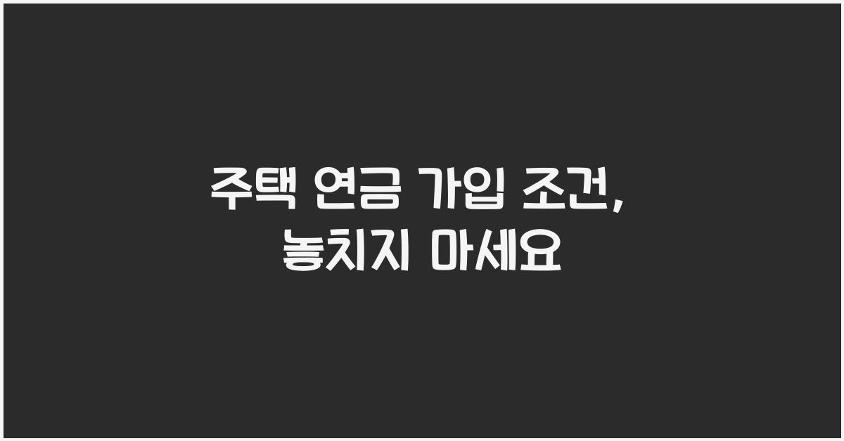주택 연금 가입 조건, 놓치지 마세요